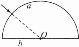 13. 如下图所示,一束光射向半圆形玻璃砖,O 为圆心,请作出光通过 a、b 两个界面的折射光线。