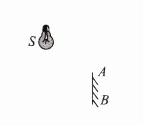 9. 如下图所示,S 是发光灯泡,AB 是平面镜,画出人眼在 AB 左侧什么范围内可通过 AB 看到镜子中灯泡的像,“范围”用带斜线的阴影表示。