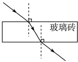 12. 如下图所示,一束光射向一块玻璃砖,并穿过玻璃砖。画出这束光进入玻璃砖和离开玻璃砖后的光线(注意标出法线)。