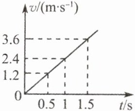 (3) 为进一步探究小球在斜面上运动的速度与时间的关系,根据表中数据作出了 $ v-t $ 图像,如右图所示。假设斜面足够长,小球从 $ A $ 点滚下,经过 $ 2\ s $ 到达 $ E $ 点(图中未画出),则该小球经过 $ E $ 点时的速度为