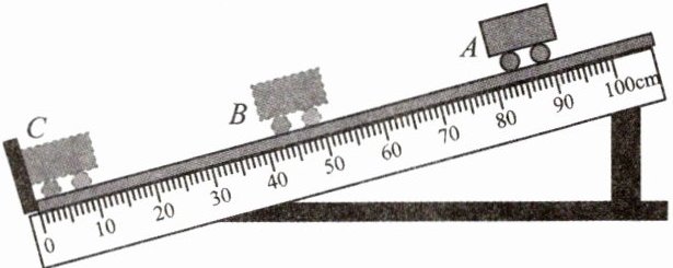(5) 若测得小车从 $ A $ 点滑到 $ C $ 点的时间 $ t_{AC}= 2.4\ s $,小车从 $ A $ 点滑到 $ B $ 点的时间 $ t_{AB}= 1.6\ s $,则 $ AB $ 段的平均速度 $ v_{AB}= $