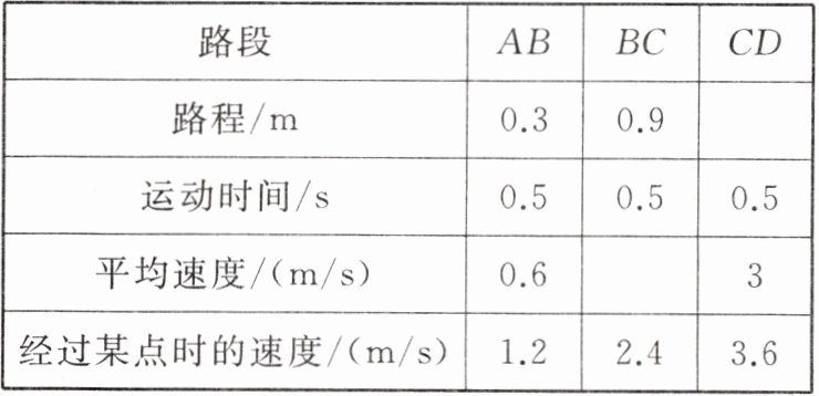 (选填“$ > $”“$ < $”或“$ = $”)$ v_{BC} $。| 路段 | $ AB $ | $ BC $ | $ CD $ |
