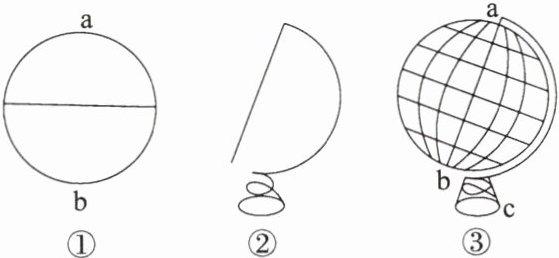 第一步:如图①所示,在乒乓球的中部用红笔画上一个圆圈代表赤道,在 a、b 两处分别各钻一个小孔代表______和______,使小孔到赤道上各点的距离______。