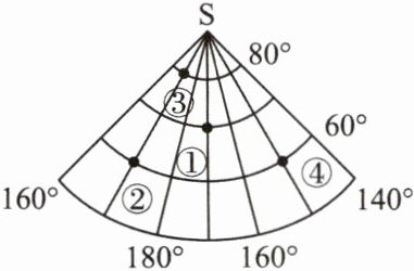 22. 读下面的弧形经纬网示意图判断,下列叙述正确的是( )
