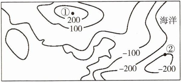 下图为海拔和相对高度示意图。读图,回答1~2题。