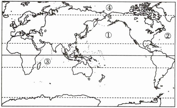 14.下图为世界海陆分布示意图。图中①②③④代表的大洋名称,正确的是 ( )