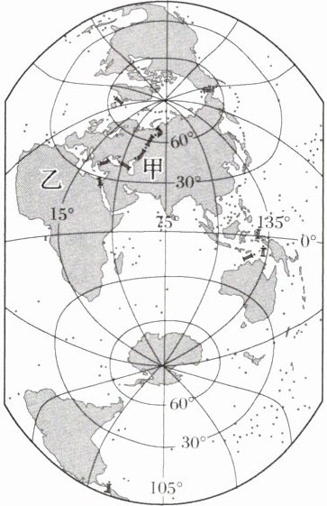 17.世界两大山脉带中,一列是太平洋沿岸山脉带,另外一列是 ( )