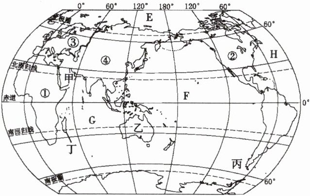 9.甲、乙、丙、丁四地中属于半岛的是 ( )