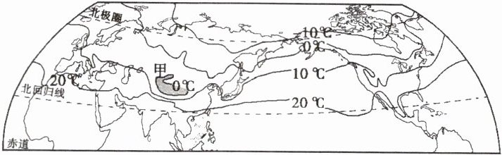 13. 图中甲区域为世界最高的高原青藏高原,它年平均气温较周边地区低的主要影响因素是( )