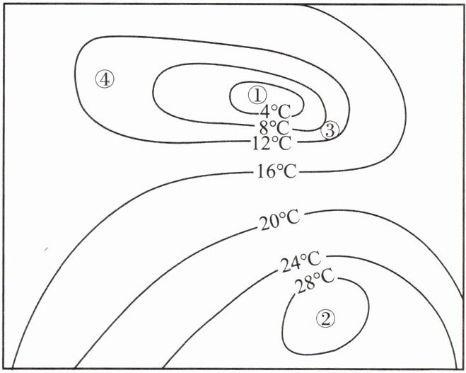 11. 下列关于图中①②③④四地气温状况的叙述,正确的是( )