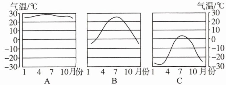 下图是不同温度带各月气温的变化,能基本反映山东省气温变化的是______图,气温年较差最小的是______图,B图所在地属于五带中的______带。