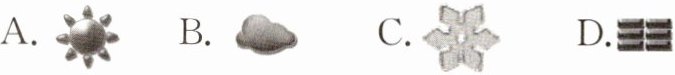 34. “千山鸟飞绝,万径人踪灭。孤舟蓑笠翁,独钓寒江雪。”这首诗中描述的天气,可用符号表示为( )