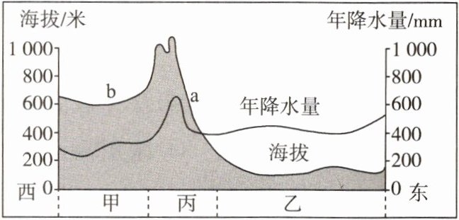 35. 下图为我国某区域沿北纬 42°附近的地形剖面图,a 处年降水量多于 b 处,主要影响因素是( )