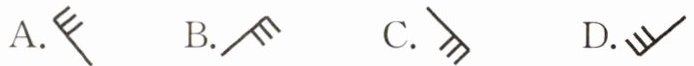 33. “万事俱备,只欠东风”中的“东风”指的是东南风,下列天气符号表示东南风六级的是( )