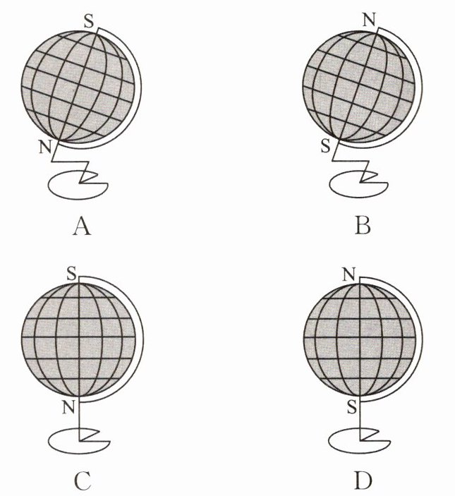 1. 为了更好地学习地球知识,同学们把乒乓球穿在铁丝上,自制简易地球仪。其中制作正确的是( )