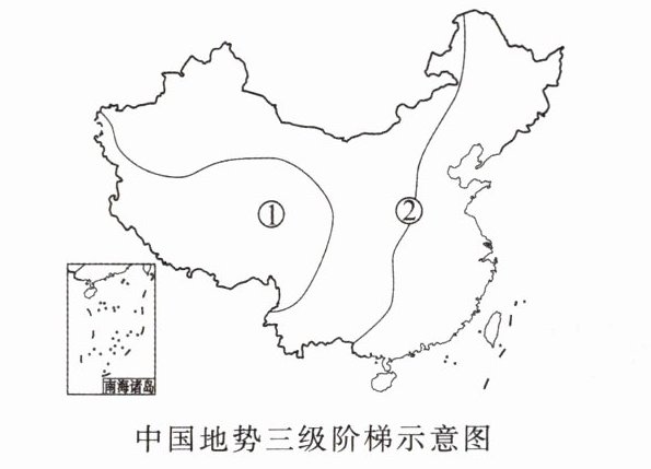 下图为中国地势三级阶梯示意图。读图,回答5~7题。