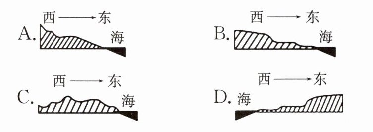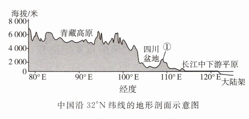 下图为中国沿32°N纬线的地形剖面示意图。读图,回答1~4题。