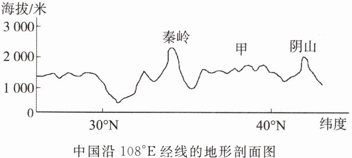 下图为中国沿108°E经线的地形剖面图。读图,回答20~21题。