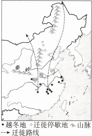 19.在小天鹅越冬地中,甲位置偏北的主要原因是 (