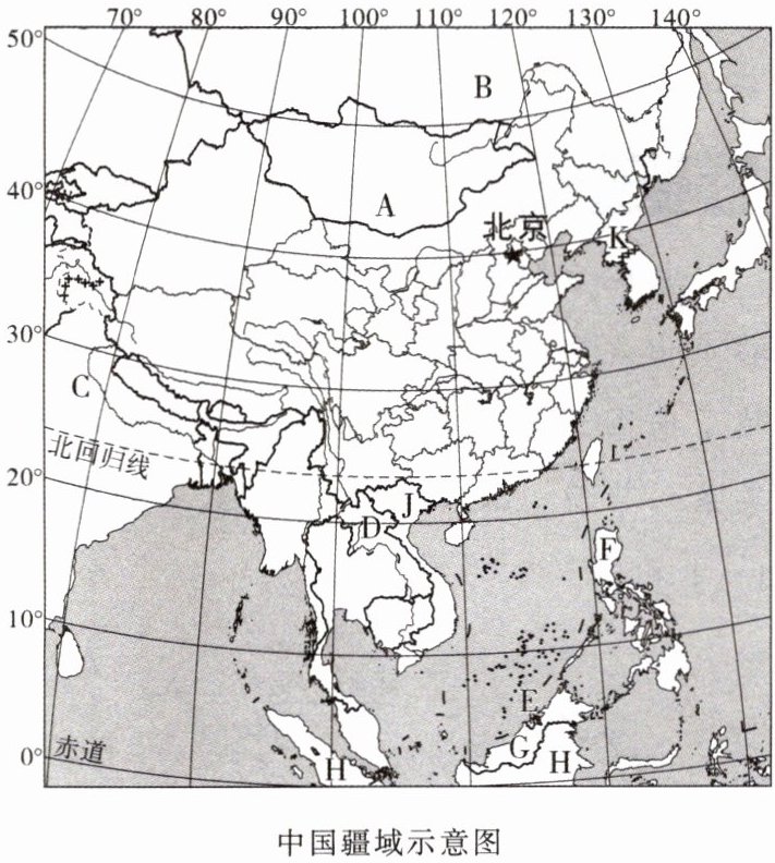 (3)填出既与我国陆上相邻又隔海相望的国家的名称。