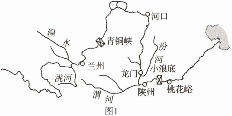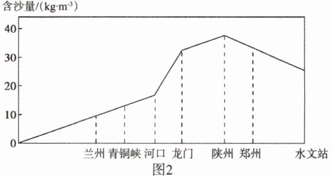 <题目>图1为黄河水系图,图2为黄河部分水文站测得的含沙量统计图。读图,回答26~28题。