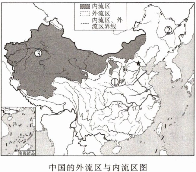 汛期是指流域内季节性和定时性江河水位上涨的时期。我国大部分河流的汛期一般出现在6月—10月,形成夏汛,但东北地区的河流一年有春汛和夏汛两次汛期。下图为中国的外流区与内流区图。读图,回答23~25题。