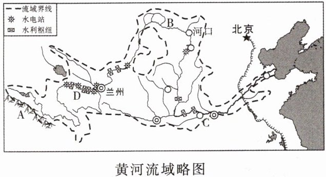 (2) 黄河上游D处水能资源丰富,主要是因为