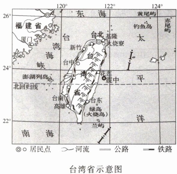 (2024·河南驻马店中考)2024 年 4 月 3 日 7 时 58 分,台湾省花莲县海域发生里氏 7.3 级强震,并出现多起余震,福建、浙江等多地有震感。下图为台湾省示意图。读图,回答 11~12 题。