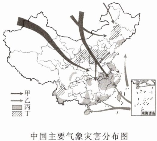 8. 图中甲、乙、丙、丁代表的气象灾害,排列正确的一组是(