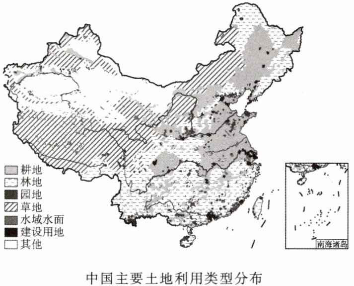下图示意中国主要土地利用类型分布。读图,回答4~5题。