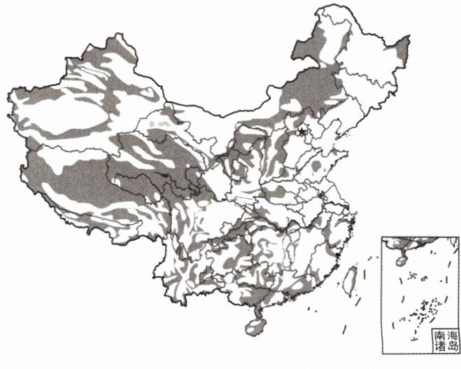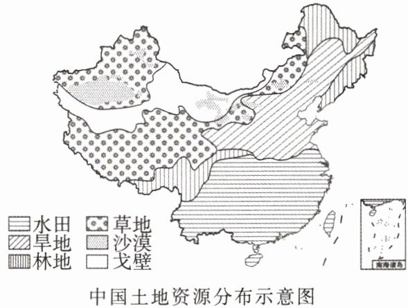 下图为中国土地资源分布示意图。读图,回答2~3题。