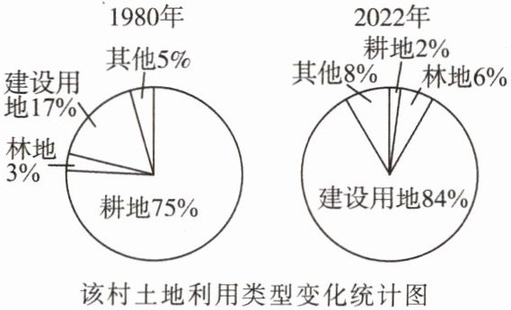 13. 从1980年到2022年,该村土地利用变化情况是(