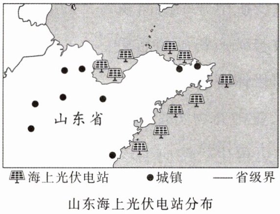 光伏发电是将光能转变为电能的一种技术。山东的光伏产业发展正在由陆地向海洋阔步前进。下图示意山东海上光伏电站分布。读图,回答 2~3 题。