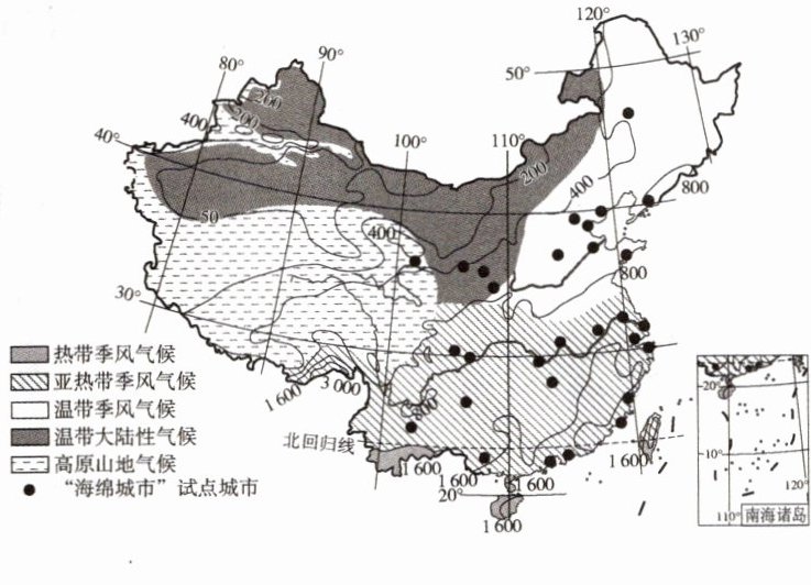 “海绵城市”就是使城市像“海绵”一样,雨季时增强对雨水的吸收、存储、净化功能,干旱缺水时可将雨水“释放”出来加以利用。下图为“海绵城市”建设试点城市分布图。读图,回答9~11题。