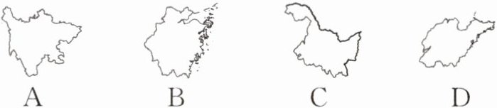 6. 某电视剧发行许可证号为“(浙)剧审字(2025)第023号”,下列省级行政区轮廓中与该电视剧的发行地对应正确的是(