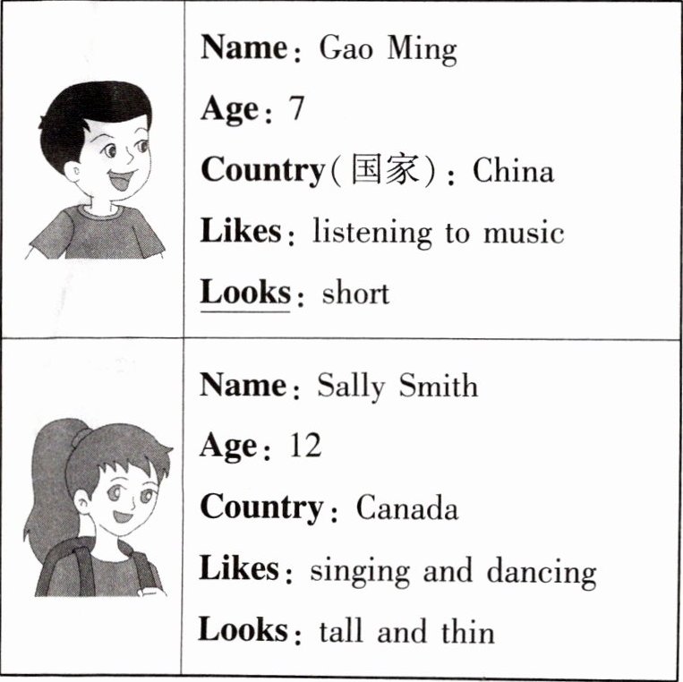 )2. Where is Sally from?A. China. B. Canada.