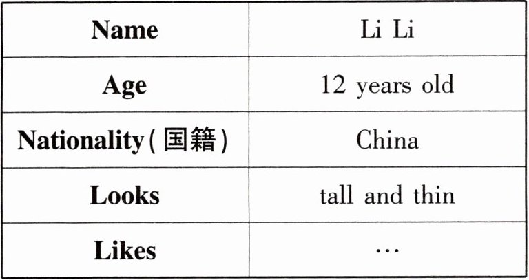 Hello, everyone! My name is Li Li. I am twelve years old. I am from Beijing. I am a student in No. 10 Middle School. I am in Class 1, Grade 7. I'm tall and thin. I am a friendly girl, so I have many friends. I like drawing and my favorite sport is swimming. I like playing ping-pong with my friends, too. Do you know about me now?