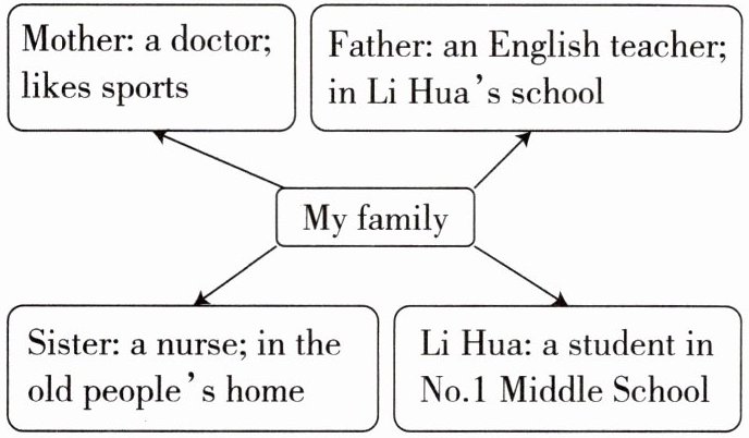 假设你叫李华,你们学校校报正在征稿,主题为 “My Family”,请根据下面的思维导图用英语写一篇短文进行投稿。