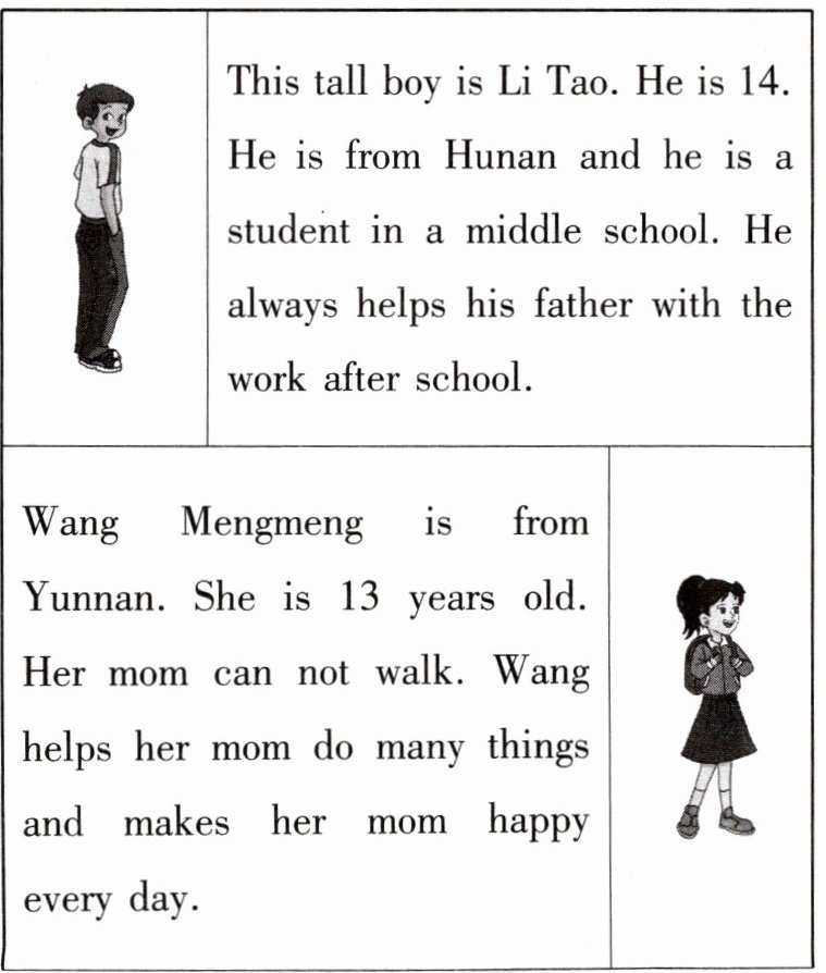 )15. What can we know from the text?A. Wang Mengmeng lives with her grandparents.