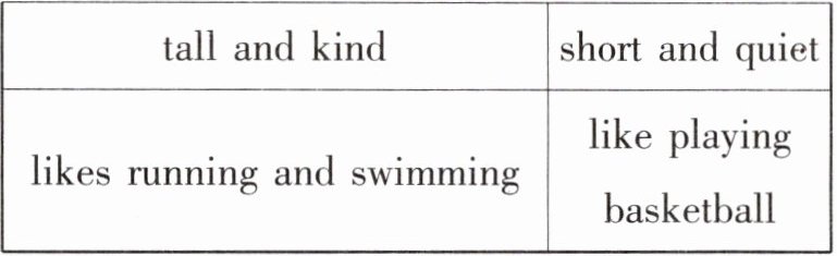Chen Lei is tall and kind, and I'm short and quiet. Chen Lei likes running and swimming. I like playing basketball. We like reading books.