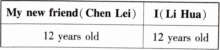 Hello, everyone! Nice to meet you. My name is Li Hua. I'm a new student in Class 5, Grade 7. I'm 12 years old. Chen Lei is my new friend. He is from Zhengzhou. He is 12 years old, too.