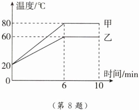 8. (科学思维 科学推理)伽利略曾说过:“一切推理必须从观察与实验得来”。宋老师在实验室对甲、乙两种物质同时持续加热,记录数据并描绘了如图所示的图像,请你由图像分析:甲物质的沸点