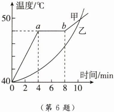 不一定;不一定 【点拨】不能确定甲、乙两种物质最初的状态,不能确定图中对应的是晶体的熔化图像还是液体的沸腾图像,故不能确定80℃是甲的熔点还是沸点;若图像是晶体的熔化图像,则乙物质在6~10 min内是固液共存状态;若图像是液体的沸腾图像,则乙物质在6~10 min内是液态。