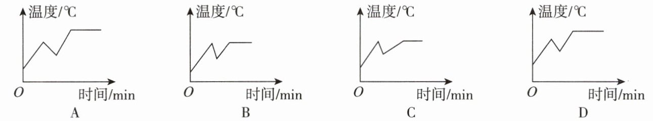 (4)在加热过程中,为了缩短加热时间,将烧杯中的水倒掉一部分后继续加热,直至水沸腾。下图加热过程中水的温度随时间变化的图像可能正确的是