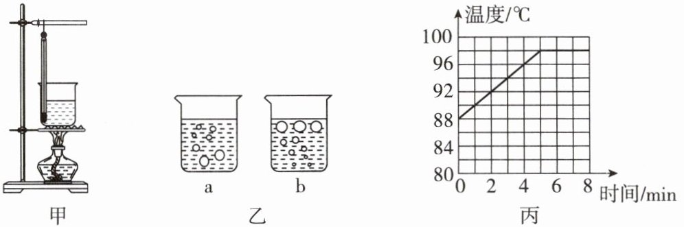 (3)图丙是根据实验记录的数据画出的温度随时间变化的图像,分析图像可知:水沸腾时的特点是