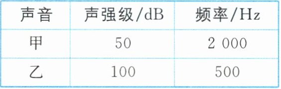 11. 在对环境声音的监测中,监测器测出的甲、乙两种声音的特性如下表所示,由表可知(