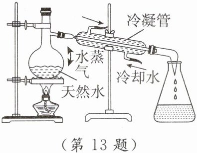 13. [2024·苏州工业园区模拟] 由于水能够溶解多种物质,因此天然水总是溶有杂质,可以采用蒸馏的方法,除去水中的杂质,得到纯净的水。如图所示为实验室制取蒸馏水的装置,制取蒸馏水的过程中,先后发生的物态变化有