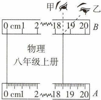 7. 如图所示,用$A$、$B$两把刻度尺同时测量物理教科书的宽度。
