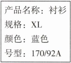 8. 如图所示是某衬衫吊牌的部分信息,号型“170/92A”表示适穿人群的特征参数及体型。“A”表示适用于一般体型,“170”表示身高$170\ cm$,“92”表示(
