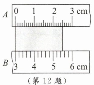 12. 如图所示,用刻度尺$A$测得物体的长度为